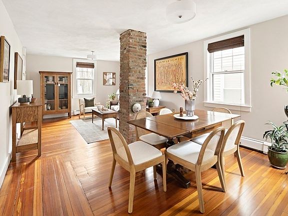 Prime location in the heart of Riverside, situated between Harvard Square, Central Square, and the Charles River. This sweet one-bedroom condo is the perfect entrée into Cambridge, pied-à-terre, or investment property, with easy access to Harvard, the Harvard Business School, MIT, and downtown Boston. The main living area is neatly divided into living and dining spaces, with beautiful hardwood floors and an exposed brick chimney. The eat-in kitchen features sliding glass doors to an exclusive use deck and shared yard with patio. Flooded with natural light through a wall of windows, the bedroom is easily large enough to accommodate a work-from-home space or reading nook. In-unit laundry, basement storage, and off-street parking for one car. Easy access to public transportation (Red Line, multiple bus lines, Longwood Medical Shuttle), museums, parks, restaurants and cafés, shopping, and highways.