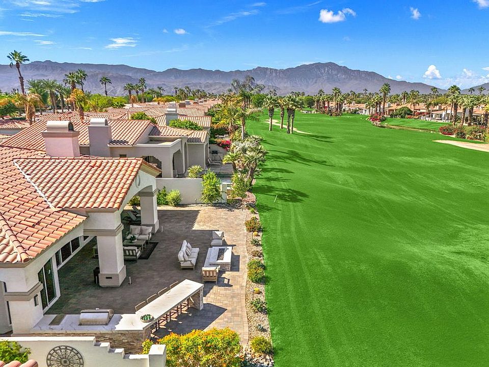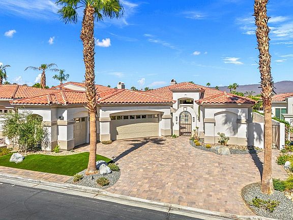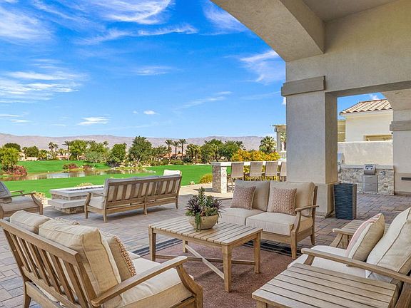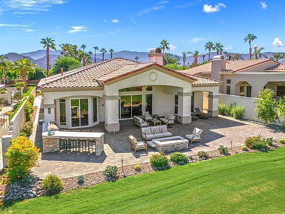 Step into Desert Luxury with this stunning home, complete with a private casita! You'll be captivated by the beautifully remodeled interiors and panoramic vistas. Whether you're a golf enthusiast or simply seeking serene living, this home is a dream come true with a readily available Golf Membership! The paid-for solar guarantees energy efficiency, while new flooring, gorgeous primary bathroom and high-end Wolf and Subzero appliances create a perfect blend of style and function. Kitchen and bar are adorned with quartz counters and Blanco sinks, elevating both aesthetics and practicality. Two new HVAC systems ensure year-round comfort. Step outside to your entertainer's paradise! The expanded back patio features custom pavers, a built-in BBQ island, fire pit, and a golf viewing bar - ideal for soaking up the desert sunsets. The driveway and courtyard have also been enhanced with pavers, adding elegance to the home's exterior. Other upgrades include fresh interior/exterior paint, a mini-split in the garage, Navien tankless water heater, and a whole-house water filtration/softener system. With 4BD/4.5BA, there's more than enough space to host family and friends. The casita has been modified for easier access to the main home but can be locked off for total privacy. Move-in ready and fully furnished! The extended patio even has room to add a private pool/spa, making this desert retreat even more desirable. Don't wait, make this gorgeous home yours!