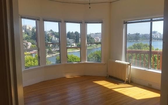 Beautiful, Spacious and Bright 2 Bed 1 Bath Apt on Grand Avenue in clear view of the Lake! The quint apartment displays it's original lay out with antique crown molding and large windows. If you value the antiquity and character of it's time you'll appreciate this home! Gas stove and refrigerator in the cute kitchen included. This home is perfect for those who love the art of a beautiful view and timeless characteristics. Restaurants and bars steps away from front the door, Easy access to 580. 15-20 min to San Francisco. Safeway and Trader Joe's close by- within walking distance to other shopping and restaurants. 3rd party Parking lot down Grand Ave available for additional charges paid directly to lot owner. Bedrooms are not equal in size. One is large and one is small. Owner pays for garbage and water. Tenant signs up for PG;E. To save your valuable time and mine, please send this basic information before making an appointment as an effort to reduce unnecessary calls and trips for both you and me. Please take a moment to e-mail me. Name: ________________________________ Phone: __________________ Reason for Moving: ___________________________ # of People to move in; Relationship to you:__________________ Intended lease term: _________ Occupancy Date: _________ Credit score and status: (Excellent, Good, Fair, Poor) _________ Do you have a Landlord Reference? Y or N: _________ What is your occupation and income (s)? _________ Most utilities paid! Tenant only signs up for PG;E Street Parking Only.