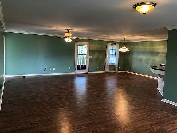 Three bedroom, two bath vinyl siding and brick home on half acre lot. Home has an open floor plan including the living room, dining room and I kitchen. Has a bright sunroom off of the living room. The home is a split floor plan with two bedrooms and one bath on one side of home with a very spacious master bedroom with en suite bath on the other side with a large walk in closet. The master bedroom also boasts a beautiful tray ceiling. The large laundry room is right off the kitchen and near the master bedroom. Their is also a large pantry right off the kitchen. The garage easily fits two vehicles. The home has a large porch on the back of the home spanning the majority of the length of the home. For additional storage, their is a large outbuilding in the back yard. No owner financing, no renting, for sale only.