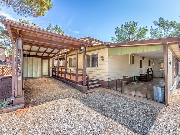 West Sedona manufactured home (No HOA) situated on an incredible .25 acre corner lot. Walk to the trails in minutes or take a stroll down the new Thunder Mountain walk/bike path just outside your door. World class views of Thunder Mountain from the front yard. This 2 Bedroom, 2 Bath has a cozy feel to it with a covered deck entry way, car port and attached office. Nestled in the backyard there is a detached studio finished to match the rest of the home. With a little love this property has strong short term rental potential.