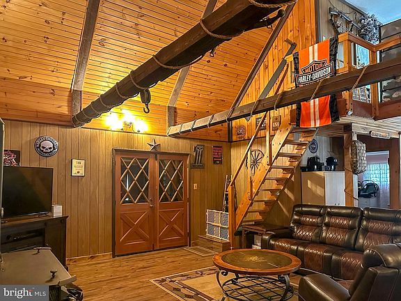 This Rustic Chalet is hidden just over the Hampshire/Hardy line consisting of over 7.8 Acres of unrestricted, very usable land! This one is high on the wish list. The home itself offers main level living with a bedroom off of the kitchen that includes it's own full bathroom. There's another room off the living room that is currently being used for a bedroom. Washer and Dryer are on the main floor as well and are being included in the sale. The loft master bedroom also has a full bathroom. The upper balcony with wooded views is a huge bonus! Three well maintained outbuildings are on the property (one with electric) as well as a detached carport for ample storage. The land lays very nice and there's plenty of your own to explore and do as you please. Call to view!
