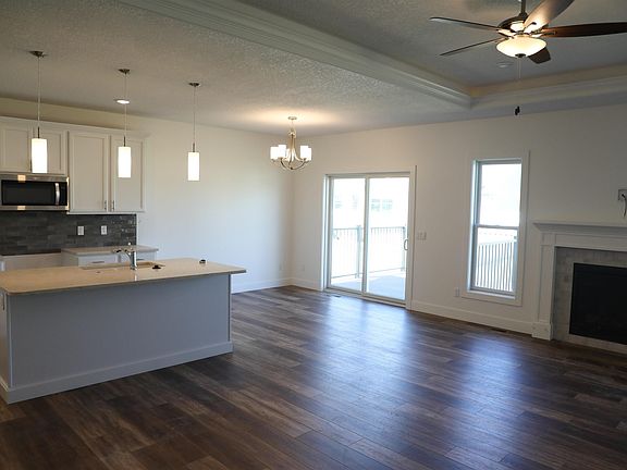 Come see this beautiful new construction home located in convenient Towne & Country Manor in Blue Grass. The home features two bedrooms and two bathrooms, a large master bedroom, gas fireplace, and a 12’x12’ deck. Enjoy lots of light with southern exposure and plenty of windows. Modern attractive finishes include 9’ ceilings with 10’ trays, painted white cabinets, quartz counter tops, and luxury vinyl plank flooring. Home includes Dolan Homes standard accessibility features such as step less entry, wide doors and staircase, step less showers, and comfort height vanities and commode.