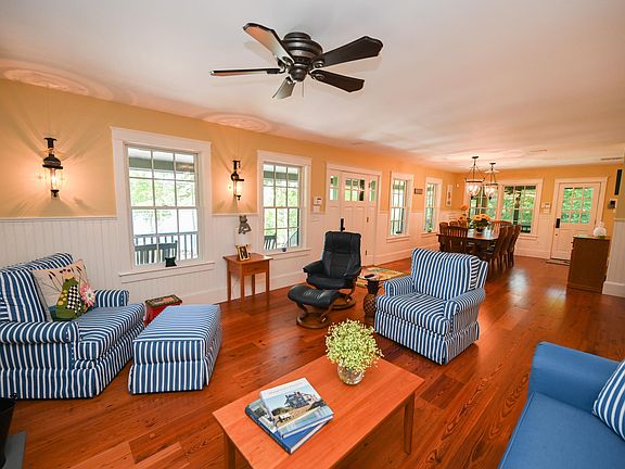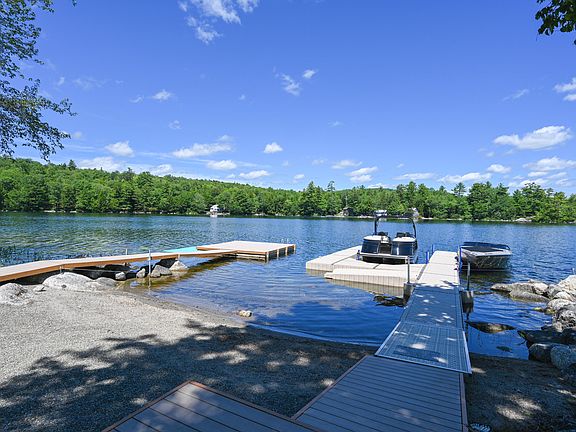 Turn-key, stunning year-round cottage-style contemporary w/ beach frontage on Phillips Lake. This home comes fully furnished, so you can just walk in the door and start to unwind! Home was designed to blend into the landscape and has nice details throughout, including gorgeous stone steps beautiful wood floors and a window seat with remote-lowering chandelier... a nice spot for relaxing w/ a good book. The main floor is open concept with a large living room with a lovely fireplace, a nice dining area and kitchen with granite counters. The first floor half bath leads to the convenient laundry room. The primary bedroom includes a full bath with shower. There are 3 more bedrooms and another full bath upstairs, as well as a nice family room in the basement. The expansive porch is perfect for viewing the water, relaxing near back yard or sitting in the screened porch. All the comforts of home w/ radiant heat & central air. Private sandy beach with impressive new docks. Please note this 4BR home has a 3BR septic design.
