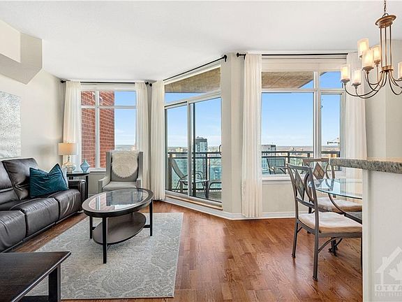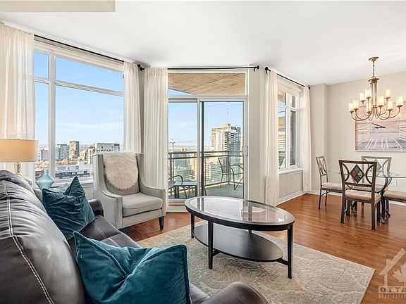 This stunning condo boasts 2 bedrooms and 2 full bathrooms, offering comfort and convenience at every turn. Located steps away from parks, shops, restaurants, NCC bike paths, and the Lyon LRT Station, you'll have everything you need right at your fingertips. Sunlight floods the spacious living area through large windows, providing beautiful views of the Ottawa River and Gatineau Hills. The contemporary white kitchen is graced with luxurious granite countertops, harmonizing seamlessly with the sleek hardwood flooring that extends throughout. Prepare tasty meals while enjoying the scenic panoramic views from your window. Step out onto your own balcony, perfect for relaxing with a cup of coffee or chilling out after a busy day while enjoying the lovely scenery. This unit also has its own laundry. You also get heated underground parking and a storage locker with the condo, so you have plenty of space. Don't miss out on this chance to live in luxury in Centretown!