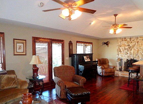 Water access to Lake Oliver!! Cedar Stucco & stone 2 story with wrap around porch situated on a gently sloping, wooded 1.37 acre lot. 3 Bedroom/2 Bath home has 2 fireplaces, fabulous kitchen &master suite, to die for Salt Water pool complex has cabana/bar, outdoor fireplace & water feature w/ waterfall. Dbl carport. Greenhouse & more. Stone walls & patio's galore!! Contiguous waterfront lot available