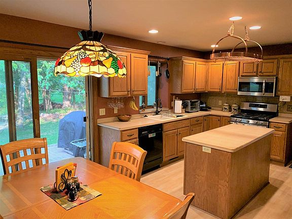 Need space ? Welcome to this large 4-5 bedroom home. Features include vaulted ceilings, updated flooring Large kitchen w/island,included SS appliances, gas range, New windows just installed 9/24/2020. Main level offers 3 bedrooms and 2 full baths which includes master bedroom bath. lower level has 1 bedroom and two bonus rooms which one could be used has 5th Bedroom lots of storage space as well. Enjoy the large wooded lot which offers fire pit area, patio, horseshoe pits, fully fenced yard two storage sheds. Minutes to Kettle Moraine state Park Southern unit and Old world Wisconsin. Come see it today!