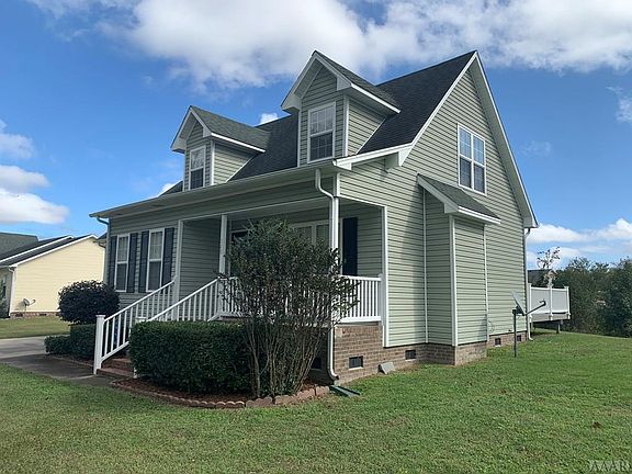 Cape cod style home on large high lot in county! Yard large enough for pool and/or garden. Great curb appeal. Two car garage w auto door opener. Galley style kitchen with separate area or W/D. Large deck with Tyrek post/rails. Master bed with en suite bath, w jetted tub. Walk in closet. Gas log fireplace. Wide front porch for relaxing. Home faces woods for privacy and views of nature. Fresh paint throughout, new vanity in 1/2 bath. 10 min to shopping, 10 min to Coast Guard Base. Very quiet area just off of Peartree Road. Septic last pumped/ckd 2019. 2 hvac units