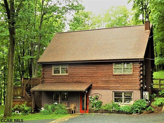 OPEN HOUSE - Sunday, June 17, 12:00-2:00 PM. From the babbling brook lining the driveway to the numerous trails into the woods; nature surrounds this cozy log cabin home on 10+ acres. This Julian gem boasts a 3 bedroom 2 bath home with a mini split system, a detached 3 bay garage on a concrete slab that includes an office & horse stall, an additional 1 bay detached garage, a garden shed, & a large fenced in pasture that currently houses a horse. The home features an open kitchen & living room with high ceilings with a large loft overlooking the space. The main floor also includes a full bath & 2 bedrooms. The lower level has a large family room, an additional bedroom, a bath, & a spacious laundry room. No matter where you are on the property you will feel cozy & at peace taking in all the beautiful views. The property is a convenient 15 minute drive to N. Atherton St. in State College.
