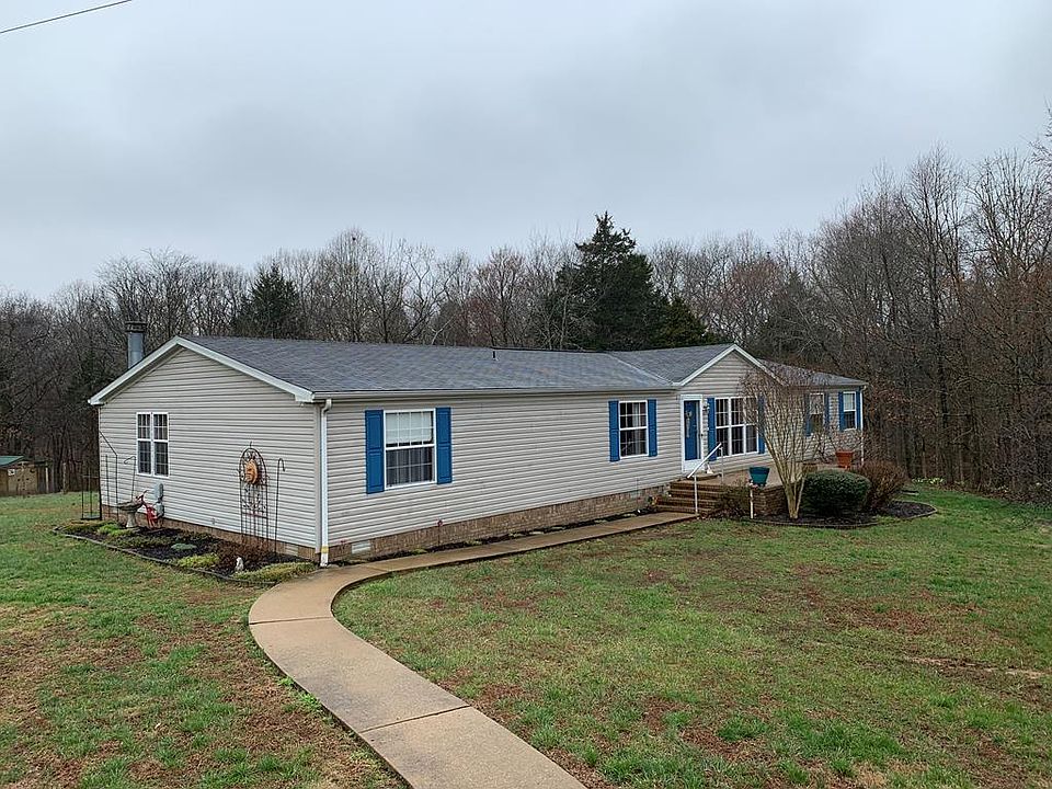 2004 Fleetwood Double Wide home 32' x 80' situated on 7.25 acres, 4 BR, 2B, Den w/wood burning FP, vaulted ceiling, huge kitchen and eating area, appliances remain. Two Additional buildings - 24' x 50' metal barn with 10' x 24' covered porch which includes 3-room apt. with bath, workshop, storage shed for mowers & other tools, covered carport. Also fenced dog yard with 18' x 24' metal bldg. Nice landscaping shrubs, flowering fruit trees with perennial flowers. Property includes oak, pine & river birch trees on front property line. Space for garden area.w/ country living. No restrictions. Outdoor paradise with hunting on property, fishing in KY Lake within 15 minutes, must see to appreciate.