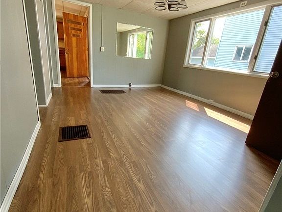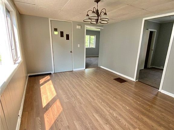 Charming and cozy, why rent when you can own this delightful 3 bedroom, 1.5-bathroom, 2-story home? It features fresh paint, new flooring, and is ready for its new owner. The living room and dining room are flooded with natural light, while the oak kitchen with an eat-in area includes a laundry space and a connected back mudroom. On the first floor, there is a bedroom or office, a half bathroom, and a front mudroom. Upstairs, a spacious landing serves as a perfect reading or play area. The sizable front bedroom has new flooring and ample closet space, along with another bedroom. The bathroom showcases a tiled walk-in shower and double closets. Outside, a two-stall detached garage, a new roof, and a generous size yard completes this move in ready home.Call for your personal viewing.