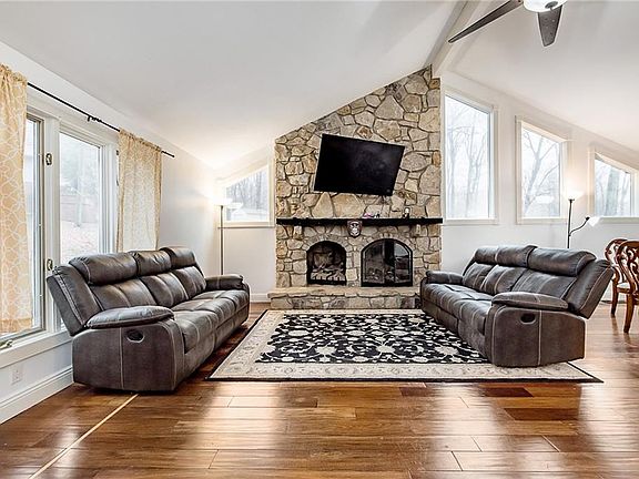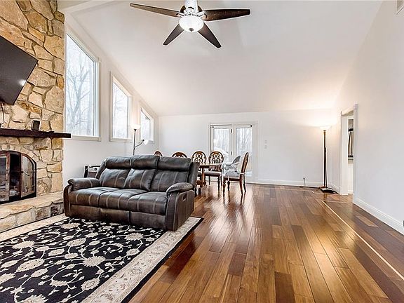 CHECK OUT THE 3D TOUR! Luxury is in every inch of this 5 br, 2.5 bath, move-in-ready home on partially wooded 3.4 acre lot! Walk inside to cathedral ceilings, brazilian chestnut flooring & gorgeous stone gas fireplace. Gourmet kitchen with built in oven & refrigerator, expansive gas cook top & exhaust hood. Wall of windows in the spacious kitchen/dining room overlook your backyard oasis. Incredible master suite has walk-in closet with shelving and custom bathroom, double bowl sinks, marble tile, high-end walk-in shower. Sunroom has beautiful granite floors, rec room has tile and the hot tub stays! Additional 2 story garage w/wood working shop & greenhouse! Spacious backyard is fully fenced with mature trees. Roof & decks 3 years old.