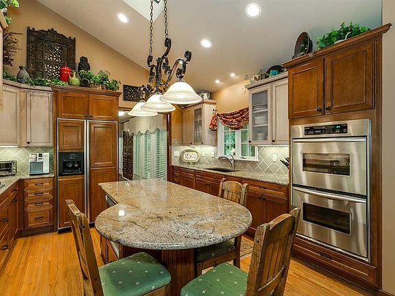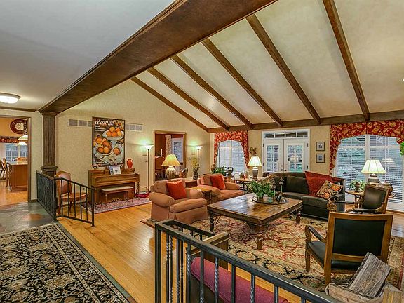 WOW! Located on a tree lined street, this sprawling ranch boasts wonderful exterior and interior amenities. Beautiful curb appeal is enhanced by a circle drive & a covered front porch. Upon entry, you are greeted into the beautiful great room with a dramatic wood burning brick wall fireplace, wood flooring and a vaulted beamed ceiling above. The remodeled kitchen will appeal to the cook in your home with vaulted ceiling, island cabinet, granite counters, built-in refrigerator, eating space, pantry, double ovens & skylight. The dining room is conveniently located off the kitchen for dinner parties and includes a custom ceiling, built-in bench & wood floors. In addition to the great room, this home has a family room with built-ins, wood floors, beamed ceiling and another fireplace anchored on a brick wall...enjoy using this space for small parties or a night in. The master retreat features a door to the backyard and a huge private bath with walk-in tile shower, his/her vanities, make-up station, whirlpool bath & spacious walk-in closet. This home has 4 additional bedrooms and 3.5 baths for family members or guests. The main level is completed by a drop zone off the garage and an HUGE laundry room with a 2nd dishwasher. For additional living spaces, enjoy the finished basement with rec room, game room & tons of storage! This home is not lacking in space!! You haven't seen a gem like this, the backyard is the ultimate summer oasis. A gunite pool with diving board, pool house with bath, pergola covered patio, a zen garden & the shady trees make this backyard a true escape!! Basement sq. ft. estimated.