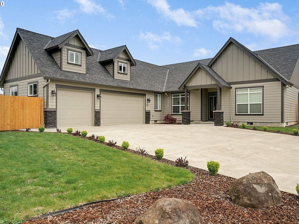 Stunning Custom Home w/high end finishes! Open floor plan w/ hard to find 4 bedroom 3 full baths. Formal living room at front entry w/ 10' tray ceiling. Dream kitchen w/granite counters, SS appliances, Double built in ovens, Breakfast bar, WIP nook, family room, carved bamboo HW flooring, Gas FP. Master suite w/10' tray ceilings, tile shower, soaking tub, dual sinks, granite counters. Covered patio w/recessed lighting, huge backyard w/fire pit. Large sideyard for future RV parking. UGSS.