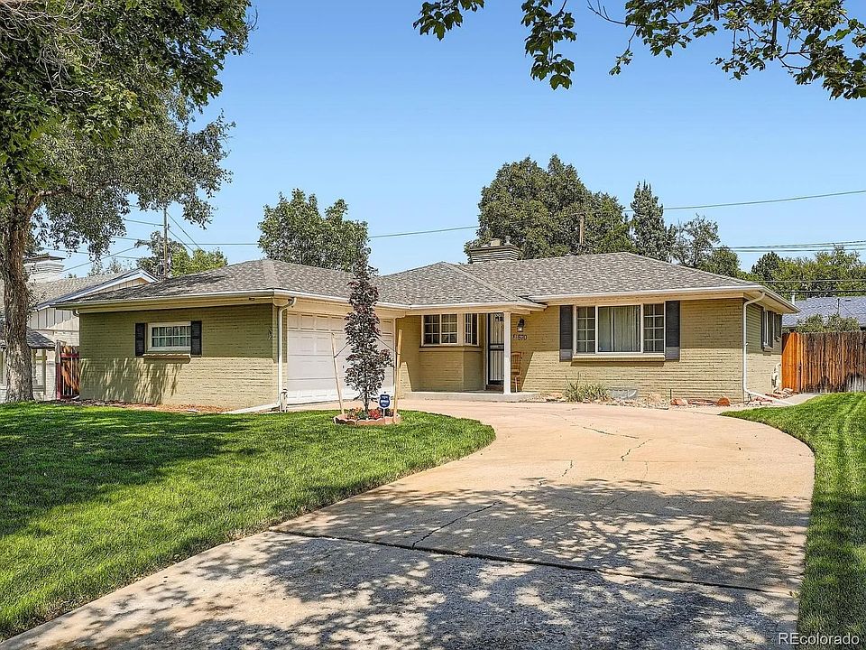 Welcome to this impeccable brick ranch boasting 3 bedrooms, 3 bathrooms, and over 3,200 square feet of beautifully maintained living space. The main floor features hardwood floors, a spacious primary suite, and the convenience of main-floor laundry. An updated kitchen showcases quartz countertops, maple cabinets, stainless steel appliances, glass-front cabinetry, and a skylight that fills the space with natural light. Additional highlights include recessed lighting, crown moulding, two fireplaces, and a finished basement with a bath and rough-in for a tub. Thoughtful updates such as new windows, a new roof with gutters and leaf guard, radon mitigation system, heated floors, and central air ensure modern comfort and peace of mind. Enjoy Colorado's seasons from the covered front porch or entertain on the covered back patio, surrounded by a fully landscaped yard with sprinkler systems in both the front and back. An oversized two-car garage provides ample storage. Ideally located in a desirable neighborhood close to light rail, bus routes, shopping, and diningthis home is in pristine condition and truly move-in ready. Location! Location! Location!