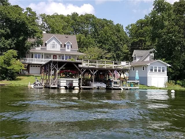 A Lake Lover's Dream! This Badin Lake Waterfront Home is situated on 3 lots w/161 ft of lake frontage. The property has a premium location along deep water. Stationary pier w/2 covered boat slips & lifts, huge upper sundeck, PWC port, seawall & grandfathered on-ground boathouse. Lakefront sitting area & level yard to the water is perfect for cookouts, holidays & family get togethers. The main house is 3 BR, 2.5 BA. Open floor plan w/lake views from every room! Master suite includes a spacious bathroom (dbl. vanity) w/separate jetted tub & shower. Laundry on main. Wrap-around lakeside covered porch is ideal for summer relaxation & provides views in multiple directions. Upper level includes 2 BR, sitting & BA w/dbl. vanity. Basement includes billiards & garage. Detached garage includes 2nd living quarters (mother-in-law suite). Ample parking & circular drive. Convenient to the lake's marinas that provide dining, gas & watercraft rental. Furn. negotiable. Boat ramp within walking distance