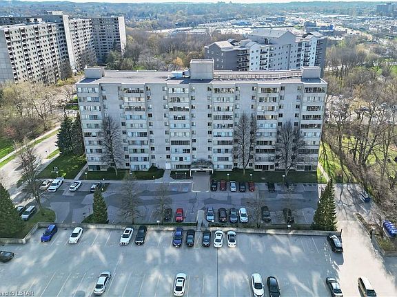 Location! Location! Location! This spacious condo in North West London is looking for a new owner to love it. These units don't come up often and it's easy to see why this building/area is so desirable. Offering so much convenience with walking distance to gyms, multiple grocery stores, restaurants/entertainment, medical offices, Costco! and virtually every other amenity you can think of. You can forego having a vehicle due to the effortlessness of public transit with multiple bus stops located right outside the building. Easily take a bus to Western University/University hospital, Fanshawe college, downtown or anywhere else in the city. As you enter this welcoming unit, you're greeted with several updates throughout and loads of natural light. To the left, you have a huge living room covered in lovely light coloured laminate and another large area that is great for a office especially if you work from home. This area then wraps around to the dinning room which offers a great view of the city from the 8th floor. The kitchen is bright and offers lots of cabinetry and is the perfect size for all your needs. The bedroom is spacious with ample closet storage. The 4 piece bathroom has been updated and includes a beautiful vanity with a quartz countertop. Other updates include a refreshed kitchen, new dishwasher, updated bathroom, AC & Heating unit compressor new July 2023. In-suite laundry & water included in the low condo fee of $237/month. Visitor parking available and one exclusive parking spot included with the ability to rent a second exclusive spot from the management company for $25/month. This unit is perfect for first-time home buyers/investors or those looking to downsize. This one won't last long!