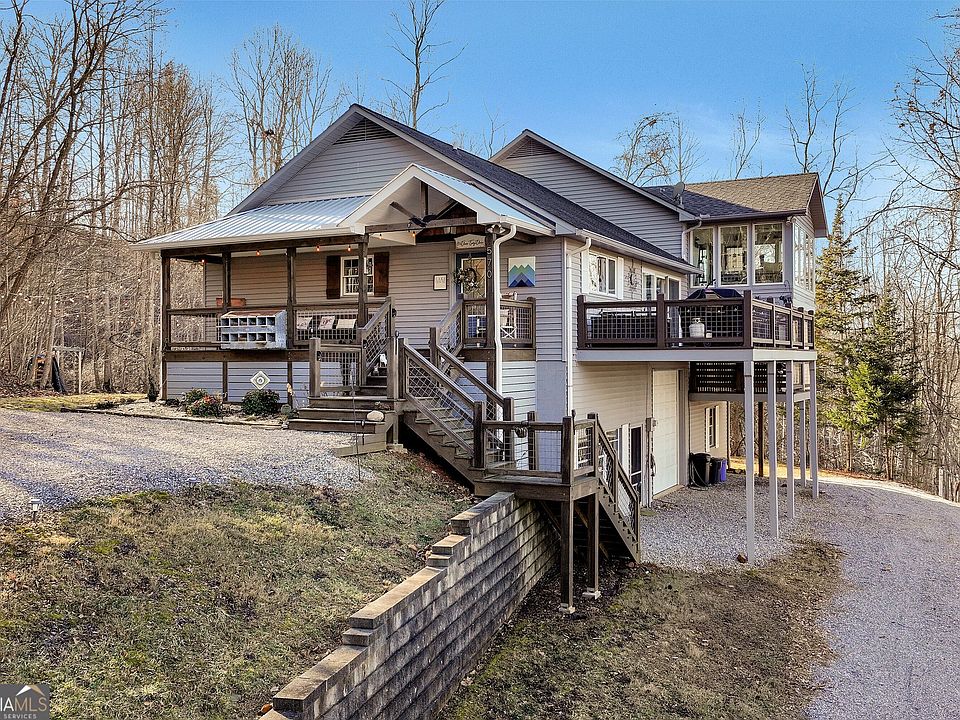 BEAUTIFULLY UPDATED LAKE HOUSE!!! Look no further, this priced to sale charmer will be gone before you know it! Located on Lake Chatuge, enjoy all 4 seasons of this wonderfully appointed home with scenic views of the lake that can be enjoyed from the main floor, heated deck, or hot tub! With a double split driveway, this home comes with one of the biggest lots in the area on 1.49 acres. That means a spacious yard that is perfect for entertaining or having a cozy evening around the fire pit, while the rest of the family relaxes under the nearby custom gazebo. It's an outdoor lover's dream! Huge bottom floor is fitted to have a guest suite built in (Airbnb it out or studio Apartment for extra income). Over 20-foot garage door installed for stowing your boat along with room for 2 cars or your RV (Electrically wired for a 30 AMP). The main floor is fitted with a gorgeous front porch that is incredibly spacious. The interior of the home is updated with a "modern farmhouse style" that can be seen with barn doors throughout, beautiful exposed wood beams across the high vaulted ceilings (adding to the openness of the space) and upgraded fixtures. The kitchen is remarkably furnished with floating shelves and track lighting. Appliances are like new! Huge living area with beautiful stone framed gas fireplace that can be controlled with an easy click of a remote. Updated flooring throughout the entire house and unique touches through and through. The main floor has its' own large deck that is equipped with a grill and a desirable view of the lake! This floor also has a guest suite with a built-in closet and a full bathroom. Head downstairs to a flex room that can be made into an office or workout room. This room opens up with large sliding glass doors to another covered deck with a hot tub to enjoy all year round! There's also an additional spacious room on this floor that can easily fit 2 queen sized beds; can be used as another guest suite, playroom, or a man cave! This room includes a large closet along with another full bathroom that is updated throughout, so the opportunities are endless. Head upstairs to the very top floor to enjoy the incredible master suite with vaulted ceilings decorated with wooden beams! Extremely spacious walk in closet through barn doors with built in shelves throughout. The master suite has its' own beautiful private sunroom equipped with a bench swing and custom heated floors. This room has the best view of the lake through 360 glass windows that flood the area with natural sun light. Beautiful modern farmhouse styled master bathroom with double vanity and shiplap walls come with the master suite as well. A giant walk in shower and a vanity goes perfectly with the magnificence of this master suite. Request a showing TODAY because this beautiful lake house will be gone tomorrow!