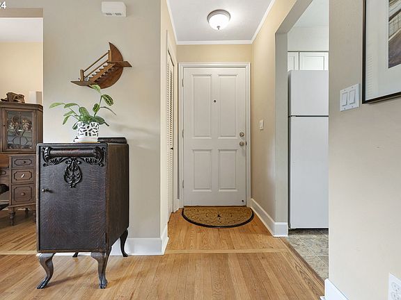 The condominiums at Lake Oswego Village are situated in a unique corner of Lake Oswego, spread over three acres at the head of historic Lakewood Peninsula. This particular main floor condominium features immaculate interiors, including two bedrooms, a living room with an alcove, a bright eat-in kitchen and pristine hardwood floors throughout. The unit features a washer and dryer, as well as a clean, dry storage space in the basement. Outside, you will find deeded carport parking right outside the front door, perfect for those rainy days (#34). Enjoy your private front deck for morning coffee, barbeques, and an afternoon read. This enchanting unit enjoys a prime location that caters to every need. Access to the adjacent the swim park ensures afternoons in the water. At a stone's throw, George Rogers Park beckons with its myriad amenities, including lush greenery, tennis courts, boat ramp, and the Willamette River Trail for long walks. And when you are ready for a change of pace, venture into the vibrant downtown where a cornucopia of shops, restaurants, and the iconic Lakewood Center for the Arts await. Summer festivities come alive here, painting the town with color, music, and laughter. Truly, this is more than a home-- it is a gateway to Lake Oswego's vibrant spirit!
