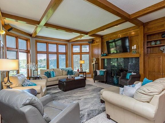 You won't want to miss this incredible ranch with over 4500 sq ft of finished space on an almost 2 acre lot in the heart of Waukee! Come see the custom-woodwork throughout the home with main level master suite and laundry. Main floor also boasts a beautiful library, formal dining room, large family room, updated kitchen with granite countertops and newer ss appliances, another eat-in area, 2 ½ baths, sun room, and 3-season porch! Walk down the extra-wide staircase to the lower level and you'll find a rec room, 3 bedrooms, 1 full and 1 ¾ bath, 2nd family room, and large storage area. Don't forget to walk out onto the gorgeous backyard and enjoy the view of the pond with dock sitting area. Large 3 car attached garage and extra storage/shed space built-in on the back of the home. Located close to Des Moines Golf & CC! You cannot find this amount of space, on this kind of lot, right in town! Call for a showing today! *Transferable AHS Warranty already in place.