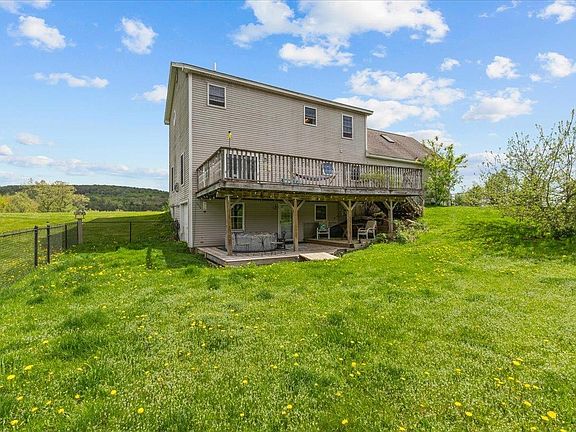 This spacious, light filled colonial is nestled just over the Fairfax border on 5.64 acres offering the perfect blend of comfort, space, & tranquility. The bright, open floor plan features an expansive living area with a cozy gas stove, creating a welcoming atmosphere year-round. The open kitchen is complete with a breakfast bar and ample storage and is open to the living area allowing for easy entertaining and everyday convenience. Next to the kitchen, you’ll find a formal dining area perfect for hosting gatherings. A convenient 1st laundry room is located just off the attached 2-car garage as well as a powder room. Upstairs, the generous primary suite with cathedral ceilings includes a private bath & walk-in closet. The fully finished walkout basement features a media room, pool table and guest quarters—ideal for extended stays or entertainment. Enjoy breathtaking vistas from nearly every room, and take advantage of the detached barn, perfect for hobbies, storage, or future expansion. This home begs for backyard cookouts and entertaining with a large deck off of the kitchen & living area. A large fenced in portion of the yard is perfect for pets and children alike. A third garage bay attached to the house, accommodates tractors, toys, or workshop space. With room to garden, play, or simply relax in nature, this property offers Vermont living at its best while being just 35 minutes to Burlington & 20 minutes to Smugglers Notch.