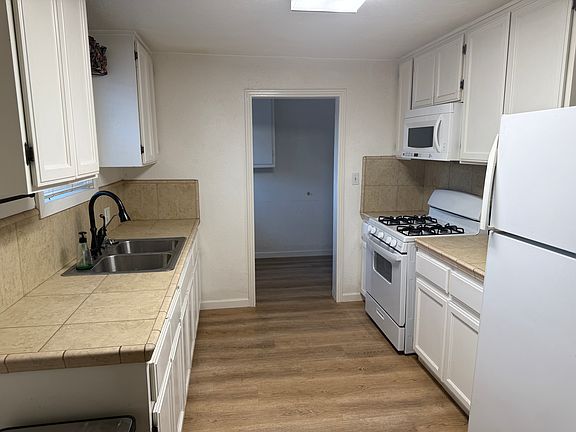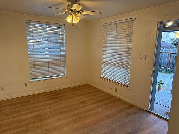Remodeled 2 bedroom 1 bath with indoor laundry and Garage. Washer/Dryer/Refrigerator included and Tenants use Alley Access for parking and Entrance. Luxury plank flooring throughout. Window Coverings and Double Paned Windows.Two Storage Sheds Included. Fenced yard. Tenant pays $150 month for water/sewer.
