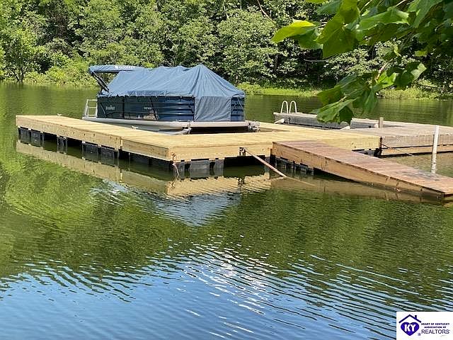 The new owner of this home is going to LOVE the easy slope and calming lake view that seems to be what every lake buyer is looking for. Wait till you see the INEXPENSIVE full time utility bills! BIG SAVINGS! This home is a custom build with well thought out planning and a lot of personal detail. The square footage may seem smaller than you think you want but when you look at the versatility and use of space, you will see the genius behind the concept. Spray foam insulation is just one well thought plan. Consider a low maintenance yard with so much parking and so little yard work it will be effortless to keep! How many of your friends spend weekends doing yard work or hiring it done? When you see 570 Spring Drive Lane the wheels will turn in your mind that you may not even need to own a lawn mower at the lake! Everything has been worked using the benefit of the lay of the land so that drainage, parking and out side appeal is maximized. Even the area where the swing is set to view the lake is perfect for the golf cart community to stop in and visit. You can't plan any better than this set up! The U shaped dock is newer and allows room for more boat parking; like having a double dock. The docks float at summer pool thanks to the COE allowing it to move out but still the summer pictures the owner provided show the joy you will have as you amaze your guests with how you are blessed to live on weekends or if you can live at the lake full time. Although the one bedroom home may cause some shoppers to turn their heads, the loft area will be a favorite for the age group that loves to have a play house. Parents will be relieved to know where the kids are and not have them underfoot. The whole open concept in the floor plan is not only easy to heat and cool, but the family can spread out yet still be part of the conversations. Room to make areas to sleep but even better, family that has campers can hook into one or BOTH of the RV set ups on the side of the home. How many places can offer that? 570 Spring Drive Lane is IMMACULATE inside. Well kept, and furnishings can be negotiated. The really large TV's will remain along with the stack washer/ dryer, stove, frig and microwave. Other furnishings are the ones negotiable. The bathroom is large enough for a beautiful glass shower and conveniently the closet is in the back of the bathroom making it great for putting laundry away and keeping things tidy.