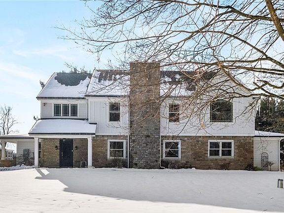 This extraordinary modern farmhouse estate, renovated in 2018, blends craftsmanship with contemporary elegance.Set on nearly 10 flat acres, it offers over 5,000 sqft of living space. The hand-laid Belgian block exterior, hardy board siding, and architectural details will certainly impress.Inside, rustic charm meets sophistication with hand-scraped oak plank flooring, antique wormy chestnut wood accents, cathedral ceilings, and a stone accent wall with a wood-burning fireplace. The kitchen features an oversized island, beautiful cabinetry, and stone countertops. The main floor includes a spacious office, bonus room, and en-suite primary. The second floor boasts 4 large bedrooms, including a luxurious spa like master suite with a walk-in closet and soaking tub. The partially finished walk-out LL offers a workout room, full bath, second laundry, and ample storage. Outdoors, enjoy a heated pool, diving board, slide, hot tub, pool house with a bar, barn, pole building, and 3-car garage.