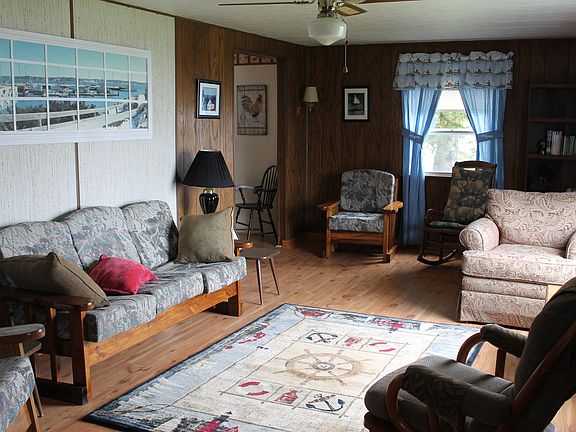 This ocean view, rental located in Robbinston, Maine, or "down east" as it is referred to often, has three bedrooms and two full baths. Full kitchen, dining room that seats six with extra seating a t the side bar accommodates a fairly large crowd. Close to Eastport, Lubec, and Machias, great down east places. Canada is only 15 miles from this location, and Saint Andrews By the Bay a lovely historical town. A public boatlanding right across the street that launches into to the St Croix River, and a visit to Bar Harbor, 90 miles to the south, could easily be made as a day trip. This is Non-smoking property. No pets.