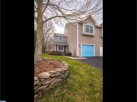 Comfortable home in the Montgomery Meadows neighborhood ready for you to move in! The roomy foyer offers a coat closet and a half bath, and leads to a comfortable sized living room with sliders to the patio and backyard. The formal dining room with pass-through window to the kitchen makes entertaining a breeze. A sunny kitchen has plenty of cabinet and counter space for meal preparation, built-in microwave, dishwasher, and the refrigerator is included, too. The upstairs offers a master suite with a full bath, tray ceiling and ceiling fan, and double closets. Note that one of these closets has been modified to accommodate a stacking washer and dryer set, which are included with the home. There are also washer/dryer hookups in the basement if that is the buyers' preference. Two more bedrooms and a full bath complete the second floor layout. The attic is accessible by pull-down stairs. The full unfinished basement awaits your storage or workshop needs, and has bilco doors for ease of access. The garage has inside access for your convenience. This home is neat and tidy from top to bottom. The Montgomery County Park and the various recreational activities available there are just a minute or two away from this home, and it is a quick and easy commute to the Quakertown entrance of the PA Turnpike.