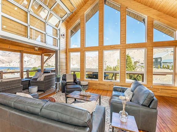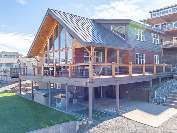 Spectacular Columbia River views/sunsets from this Sun Cove beauty. Sleeps like 5 bedrooms + bunk room, 3 bath & 3073sf. Perfect entertainment house. Open concept main floor w/ large master, amazing wood finishes throughout, fun roll-up door onto huge wraparound deck. Upper floor loft, 2 bedrooms + sleeping room. Large lower level rec room w/ stained concrete floors, bunk room & additional sleeping room. Lower patio hot tub. Community pool, clubhouse, boat launch, marina & much much more!