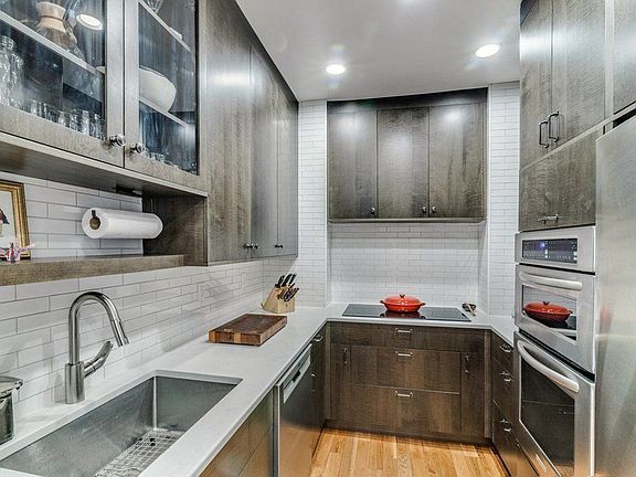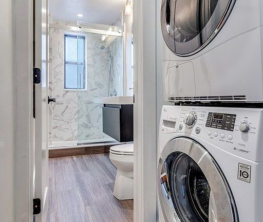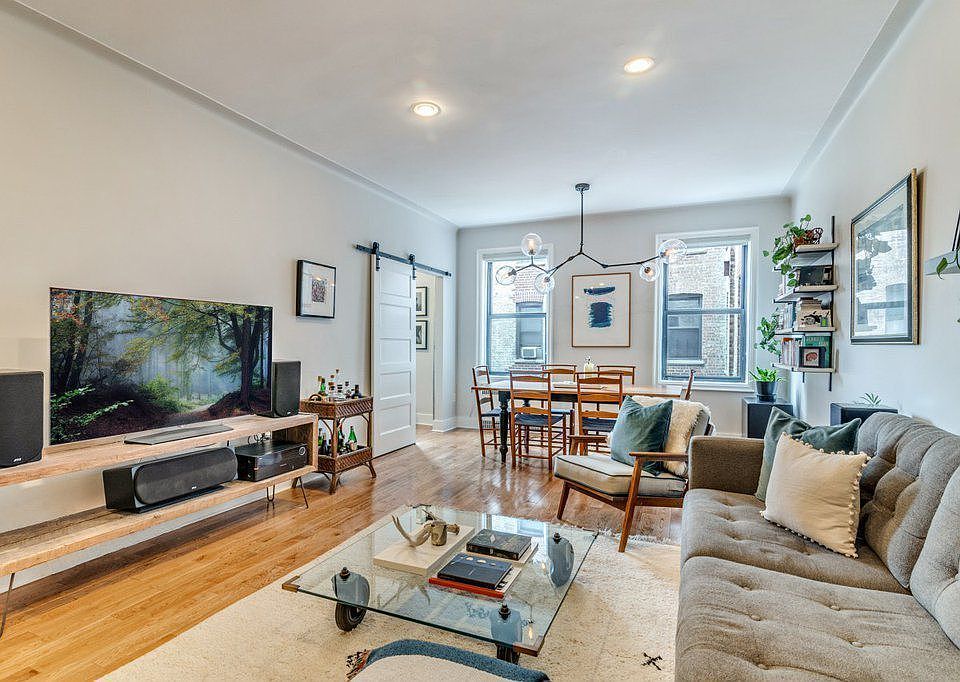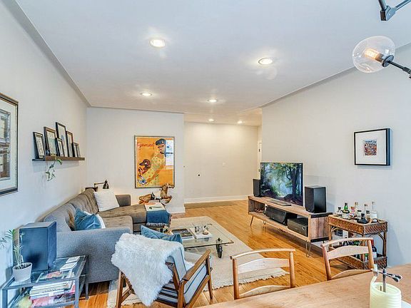 This gorgeous newly renovated two bedroom, one bath apartment located on a quiet block of the charming Ditmas Park neighborhood features a stunning living room and dining area able to comfortably accommodate a large sectional and 6-8 person dining table. The professionally redesigned and gut-renovated unit features exquisite and modern touches throughout. The kitchen boasts all-new floor-to-ceiling custom cabinets and a pantry affording ample storage. Tasteful quartz countertops, a 36 inch induction cooktop, stainless appliances, and clean backsplash tiling tie it all together. The giant master bedroom features 3 large sun-drenched windows facing East and North, a deep double closet, and comfortably fits a king-size bed with room for a dresser and desk(s). The bathroom features gorgeous floor tiling, a hex-tiled shower with dual heads and sliding glass doors, and a floating sink/vanity with recessed mirror, sitting beyond the new HE Washer and Dryer with linen storage above. A small second bedroom (currently in use as a work space) features custom shelving and a sliding barn door. New seamless hardwood floors and recessed lighting throughout complete the space. Building: This pet-friendly (dog and cat), art deco building was built in 1935. It features a lobby with stained glass windows, soaring ceilings and patterned terrazzo floors, a 24-hour doorman, low monthly maintenance, and a live-in super. A beautifully landscaped interior courtyard is great for warm weather fun and the basement features bike and extra rentable storage. Location: Located at 570 Westminster Road on a tree-lined street, the building houses Milk and Honey, a popular neighborhood cafe. Additional shopping and dining are just a few blocks away, including popular Cortelyou Road spots such as Sycamore Bar, The Castello Plan, Purple Yam, Cafe Tibet, Cafe Madeline, Farm on Adderly, Flatbush Food Co-op, and a weekly Farmer's Market. The Express B and Q trains at Newkirk Plaza will put you into Manhattan in minutes. Note: This is a legal 1 bedroom apartment.