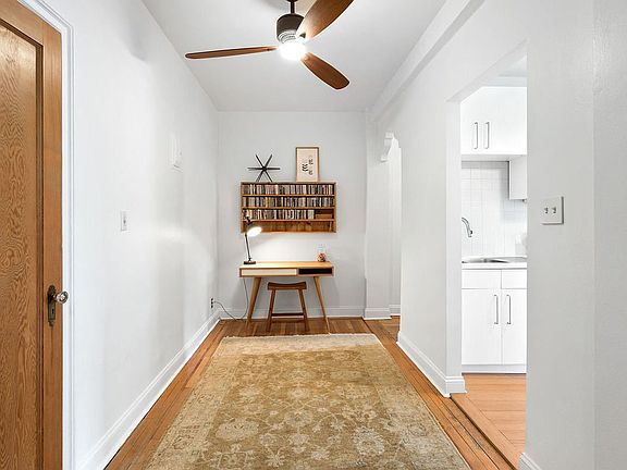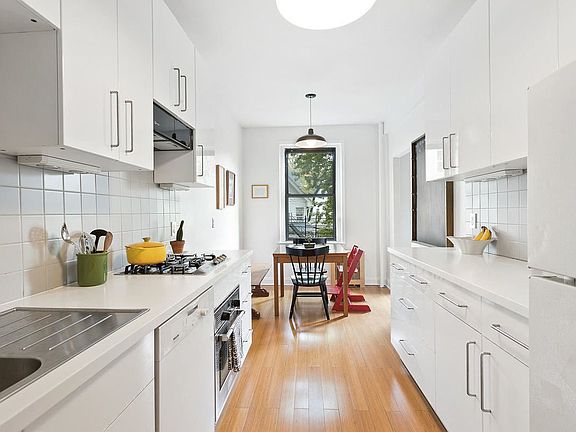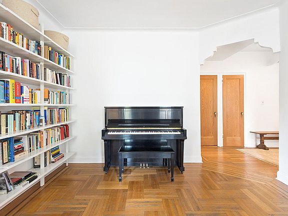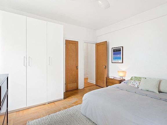 Pre-war charm, tasteful updates, generous proportions, graceful flow, and tranquility await in this classic one-bedroom plus den co-op. A welcoming entry hallway with three closets opens to the foyer with space for a desk. The spacious garden-facing living room with curved ceilings and attached bookcases offers bucolic treetop views through two oversize windows and plenty of space for living and entertaining. The large eat-in kitchen has been redesigned with white lacquer, soft-close cabinets, white quartz countertops, and Miele cooktop, oven, and dishwasher. A walkthrough from the kitchen to the living room adds to the open, airy feel. The bedroom has been divided to include a windowed separate den, nursery, or study. Keep the existing configuration or remove the wall to turn the room back into a king-size bedroom with two exposures. The renovated bathroom has a new Robern medicine cabinet, Duravit sink, and Hansgrohe fixtures. Original details include preserved inlaid parquet flooring, unique archways, high ceilings, and moldings. Welcome to 570 Westminster Road, one of Ditmas Park's premier pet-friendly pre-war co-ops, offering residents amenities that include a 24-hour attended Art Deco lobby, three elevator banks, a lovely shared landscaped courtyard, communal laundry facilities, storage (waitlist), bike storage, and a live-in super. Set amid gracious Victorian architecture, the building is a few blocks from the Newkirk B/Q and within a short distance to the attractions of Cortelyou Road. Nearby hot spots include Milk & Honey (housed in the building) and Ox Tavern.