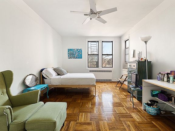 Extremely spacious 1-bedroom in one of Ditmas Park’s most coveted buildings! Stretch out and relax in this generously proportioned co-op featuring a huge main bedroom, light-filled living areas, large shared garden, and plenty of storage. Welcome inside to a sizable foyer with coat closet and room for a home office nook. Rich crown moldings and hardwood floors continue in the living room, where southern exposures from two windows create a light and lively environment for both entertaining and day-to-day enjoyment. You’ll love the kitchen’s windowed, eat-in dining space, plus the beautifully renovated solid-oak cabinet doors, newer Bosch dishwasher and built-in wine refrigerator. Particularly unique is this home’s massive, 21-foot-long bedroom with two closets and two windows, with southern and eastern exposures overlooking neighborhood trees and homes. Such a sizable bedroom presents the opportunity to create a sitting area, office, or potentially convert into two separate bedrooms. Across the hall is the updated full bathroom, featuring a shower-over-tub with hex tile surround. With six total closets, there is ample space for all your things. All within blocks of Prospect Park and Ditmas Park amenities, the farmers’ market, and vibrant nearby dining, shops and cafes. 570 Westminster is a dog-friendly, pre-war Art Deco building with a big shared garden, full-time doorman and low maintenance fees. Location, space and amenities, this lovely home checks all the boxes!