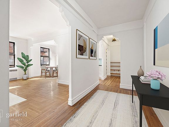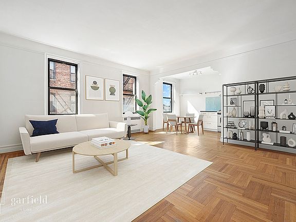 570 Westminster Road has become one of Ditmas Park's premier Pre-war coops and this classic, 5th floor, one-bedroom is no exception to what has been drawing buyers! The entryway with two closets opens directly into the open concept living space. The spacious living room offers a view of the skyline through three oversize windows and has plenty of space for living and entertaining. The large eat-in kitchen has been redesigned with white lacquer, soft-close cabinets, black quartz countertops, and stainless steel appliances, including a dishwasher. The beautiful glass tile backsplash adds a touch of color. A walkthrough from the the living room to the kitchen accentuates the open, airy feel. To the right of the entryway is a hallway with three large closets and bookshelves. Just around the corner you will find the updated, white tiled bathroom. The bright, kingsize bedroom has a large modular closet and two exposures. Original details include preserved inlaid parquet flooring, unique archways, high ceilings, and moldings. The building is pet-friendly and offers residents amenities that include a 24-hour attended Art Deco lobby, three elevator banks, a lovely shared landscaped courtyard, a beautiful garden, communal laundry facilities, storage (waitlist), bike storage, a playroom, and a live-in super. Set amid gracious Victorian architecture, the building is a few blocks from the Newkirk B/Q and within a short distance to the attractions of Cortelyou Road. Nearby hot spots include Milk & Honey (housed in the building) and its adjoining restaurant, The Grounds of Brooklyn.