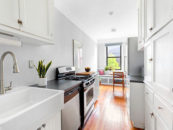 JUNIOR 1, standout studio, currently configured with a separate sleeping space, offers so much! This little gem has all the lovely pre-war elements including 9' high ceilings, distinctive archways, parquet and hardwood floors, and a spacious eat-in kitchen. The kitchen has been modernized with stainless appliances including dishwasher, cabinet depth refrigerator, and a 5-burner stove. The old world feeling still lives on in its refurbished original cabinetry which provides abundant storage and blends well with the farm sink and other new cabinets and countertops. This kitchen has an added feature of a wonderful custom cantilevered kitchen table created out of beautiful bubinga wood which has convenient electrical sockets for easy access. In addition there is a bench with storage located below the seats. The entry foyer (currently functions as a home office) opens into the well proportioned living room and adjacent sleeping area. The living room and sleeping area are separated by two built in bookcases with an architect designed Japanese style, Shoji sliding doors. The area is illuminated with two overhead Arts and Craft style lamps. The bathroom has been fully renovated but still possesses the large art deco cast iron tub for great long soaks. This unit is bright and sunny year-round, thanks to the high floor location and southern exposure. 570 Westminster Road is a PET FRIENDLY coop in Ditmas Park known for its distinctive art deco architecture and sprawling interior courtyard. The impressive lobby has vintage stained glass windows, a soaring ceiling, terrazzo floors, etched brass elevator doors, and vintage crystal sconces. Serene pathways, a gazebo, and inviting benches and grassy areas distinguish the building's shared interior courtyard. Add a 24/7 doorman, live in super, 2 porters, storage (wait list, fee) and bike storage and you see why this coop is so desirable! Milk and Honey Cafe and the new Grounds of Brooklyn both occupy commercial space on the ground floor of this coop. Ox Tavern is only 1 short block away. Be sure to peruse the tree-lined streets, past signature Victorian houses, from 570 Westminster Road to the neighborhood's many cafes, restaurants, bars, supermarkets, and the year-round Farmers Market (every Sunday) on Cortelyou Road. Bike lane on nearby Argyle road leads to the Parade Grounds and Prospect Park. Only 3 short blocks to B and Q trains at Newkirk Plaza, and 0.6 miles to Cortelyou Road Q station.