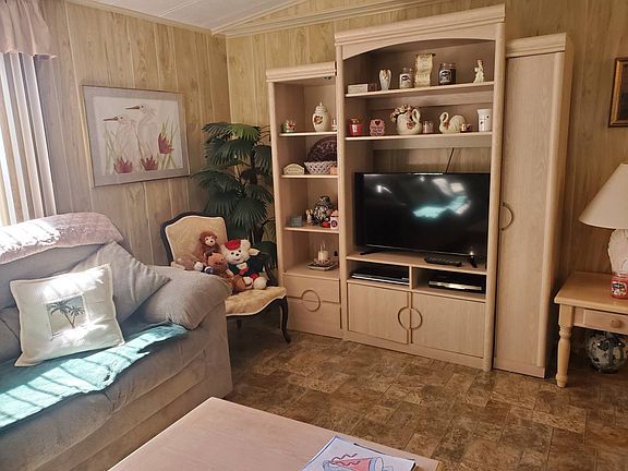 Introducing this attractive 2 bedrooms 2 bath home nestled in a quiet cul de sac in sunny Florida. This home offers a refrigerator that was installed in 2021, a range, and a washer and dryer that was installed in 2021. There is a bright, cheerful kitchen with a breakfast island together with a lot of cabinets for storage. A formal dining room with a credenza adds a special touch along with a lovely Florida room where you can entertain and relax by reading a good book. The bedrooms are spacious with 2 large walk-in closets. The floors are laminate with vinyl tile throughout. There is central air throughout the home that was installed in 2016 along with the roof that was installed in 2016. One of the great features of this home is the rear patio with a white picket fence. An added feature is an attached storage shed plus a large carport that accommodates 3 cars. Great curb appeal awaits you with a large shade tree that adds to this beautiful home. The lot rent is 682.20 that includes lawn care, trash, recycling, and all amenities of the park. Located in a great park Country Lakes I, a 55+ community, this park offers a clubhouse, pool, hot tub, billiards, fitness room, and much more. Near Hwy 41 North, makes it is close to shopping areas and restaurants. Call me for a showing, I will be delighted to walk you through this immaculate home. All listing information is deemed reliable but not guaranteed and should be independently verified through personal inspection by appropriate professionals. Integrity Mobile Home Sales cannot guarantee or warrant the accuracy of this information, measurements, or condition of any property. Measurements are approximate. Lot rent is subject to change.