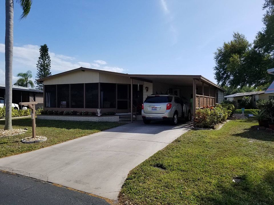 Nestled in the Northwest part of Manatee County sits this lovely 2 bedroom 2 bath home with a beautiful spacious Florida room, so you can enjoy the surrounding areas of the park while relaxing. This home is furnished, has an Air Conditioner which is only 3 years old as well as central heat. It features a refrigerator, stove, microwave, dishwasher and a washer and dryer. The floors are carpeted, laminated and tile. We must mention the floor in kitchen is only one year old. The ceilings are paneled with wood paneled walls. This home offers an attached storage shed, lanai with a carport as well as a patio in backyard where you can enjoy the Florida sunlight. This home comes with all the amenities of the park in a 55 year old community. It includes a clubhouse, pool, heated hot tub, tennis courts, billiards tables and shuffleboard courts. This can be yours with a lot fee of 670.07 monthly which includes lawn care. It is waiting for you to enjoy so please call me, this home will not last long! All listing information is deemed reliable but not guaranteed and should be independently verified through personal inspection by appropriate professionals. Integrity Mobile Home Sales cannot guarantee or warrant the accuracy of this information, measurements or condition of any property. Measurements are approximate. Lot rent is subject to change.