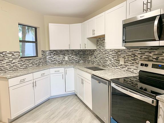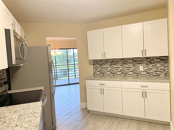 Gorgeous LAKE VIEW condo, completely renovated in 2022 in a guard gated all ages community. Four heated pools! * Both bedrooms have NEW Fans! NEW AC unit * NEW Water heater * NEW GE Electrical Panel * Easy to maintain NEW tile floors though out the entire home! NEW baseboards! - NEW Kitchen and bathroom cabinets * Extra Cabinets in The kitchen compare to other units in the community! NEW granite counter tops * NEW mosaic backslash * NEW stainless steel double sink * New Faucets * NEW Stainless Steel Whirlpool appliances *** NEW washer and dryer * NEW interior paint!!! NEW Sensor Lights in the hallway! No popcorn! Newly plastered ceiling * Screened Balcony, additional storage on the balcony ! Sliding doors open to a large patio from dining room and master bedroom with a beautiful lake view