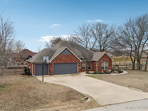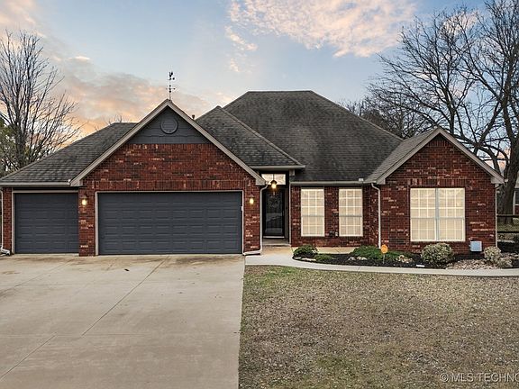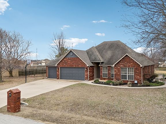 Enjoy plenty of space w/ 4 spacious bedrooms & 2 bathrooms. The home also includes a 3-car garage & covered porch The property is surrounded by beautifully lit sidewalks & mature trees, offering privacy & curb appeal. For added convenience & safety the home feat. an inground storm shelter, an alarm system w/ sensors & cameras, & permanent storage building w/electric. Easy access to highways, you'll enjoy both peace & practicality.