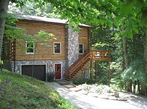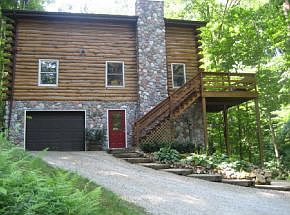 Super close East side location but with almost 8 acres of heavily wooded terrain is the beautiful setting for this light filled 2 story log home.Hundreds of ferns are the backdrop to complete this picture. Walking trails are throughout the property. The home features an open floorplan with the main level living room opening to the upper level and the kitchen. There is a main level bedroom, study/office and 2nd full bath. Windows on all sides insures plenty of natural lighting. There's not one but two fireplaces, main level has a gas log while spacious family room in lower level has wood burning insert--great for those chilly winter days. Family room is ready for entertaining with a game table or dining area in addition to seating area. The choice is yours. Lower level has 2 walkout areas, one to the front of the home and another to a covered patio surrounded by hostas at the back. The upper level features a master bedroom, huge bath with jetted tub, 5' shower, double vanity and a guest bedroom. The home has a one car attached garage but also has a 3 car detached garage with 8' garage doors (to allow for parking a boat or motorhome.) Many updates have keep this home in tip top shape. You'll see upon approaching this home t he love and care given by the owners.**NOTE: Master Bedroom curtains are excluded & LP gas in the tank can be purchased separately.