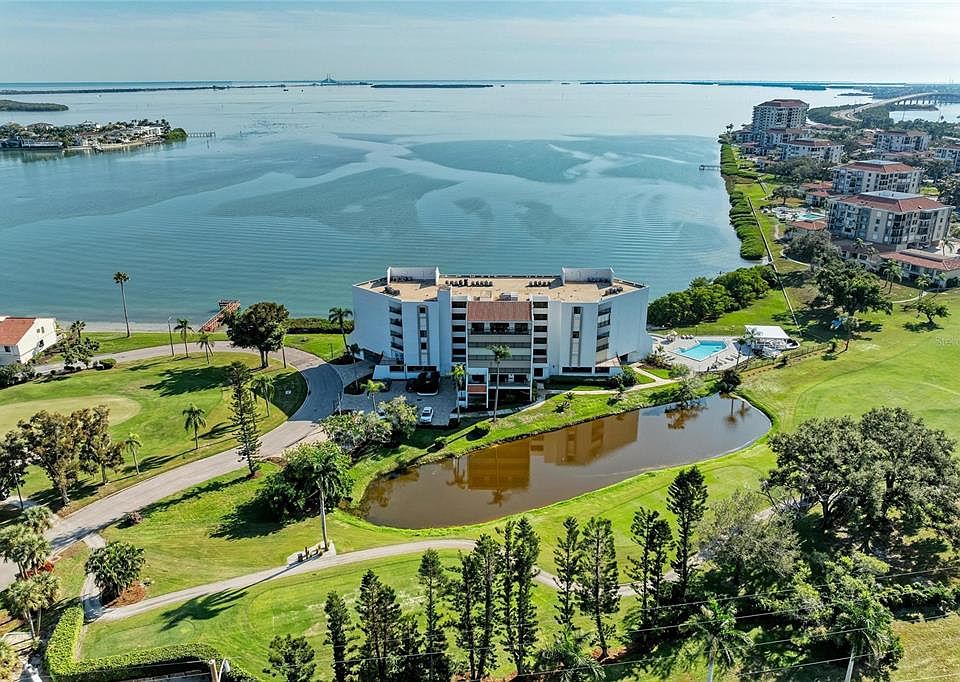 This is the one you’ve been waiting for. Location is everything—so stop shoveling snow and start shoveling sunshine at your own private waterfront retreat in Vista de Oro at Playa Escondida. This is coastal living at its finest—an offering as rare as it is remarkable. Spanning more than 1,800 square feet, this exquisitely FURNISHED three-bedroom, three-bath residence is bathed in natural light and showcases sweeping panoramas of Tampa Bay, Boca Ciega Bay, and the iconic Skyway Bridge from nearly every room. The serene waterfront setting evokes the ambiance of a private resort, delivering tranquility and refined sophistication year-round. Inside, a thoughtful blend of tile and carpet flooring, elegant crown molding, and expansive picture windows creates a space that feels both polished and inviting. Newer installed windows and electric hurricane shutters provide modern efficiency, comfort, and peace of mind. Designed for effortless entertaining and everyday enjoyment, the open-concept living and dining areas flow seamlessly onto a stunning 16’ x 40’ wraparound balcony. Accessible from the main living spaces and all three bedrooms, this extraordinary outdoor retreat captures breathtaking southern-facing water views—perfect for quiet mornings, golden sunsets, and elegant evenings beneath the sky. One guest suite also enjoys its own private balcony overlooking the lush golf course and shimmering bay beyond. The thoughtfully designed split-bedroom layout offers exceptional privacy. The primary suite is a true sanctuary, featuring a generously sized walk-in closet, dual vanities, an expansive walk-in shower, and mesmerizing water views to greet each day. The secondary suite includes a spacious closet, a full bath, and floor-to-ceiling sliding glass doors opening onto the terrace. The third bedroom offers a striking truly magical view almost surreal perspective, as though gazing into an endless horizon of water. Additional highlights include an in-unit laundry room, assigned covered parking beneath the building, and ample guest parking. Residents enjoy access to a newly updated waterfront pool and spa, a gazebo, a fitness center. Optional membership to the Isla del Sol Yacht & Country Club opens the door to championship golf, boating, fine dining, and a vibrant social calendar. Ideally located just minutes from downtown St. Petersburg, a short drive to Tampa International Airport, and moments from world-renowned white-sand beaches, this residence offers the perfect balance of seclusion and convenience. Move-in ready and truly one of a kind, this exceptional waterfront home delivers incomparable views, refined craftsmanship, and timeless coastal elegance. Arrange your private showing today and experience this rare offering in all its splendor.