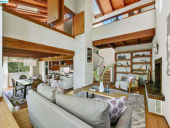 Enchanting, treehouse-like, Mid-Century, split-level designed by Les Dey with bonus spaces, expansive lot in the flats of Montclair Village near restaurants, shops, amenities. An enchanted wooded retreat near the East Bay's finest. Whimsical alcoves, decks, and a bridge entrance. Utterly charming.