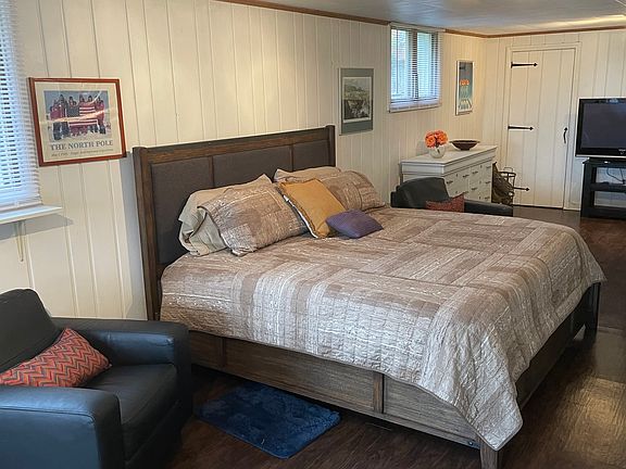 A ROOM WITH A VIEW.This furnished walkout basement apartment is flooded with natural light and provides a great view of Dutch Lake. The lake is only two hundred feet away and offers a fishing pier and boat landing. The apartment offers free off street parking, a large backyard with a fire pit and a flower garden. The apartment has its own private entrance, a full kitchen, king size bed, private bath, a wood burning fireplace, the use of a canoe, a shared laundry and a small storage room for a bike. Downtown Mound is only two blocks away featuring Ace Hardware, Wells Fargo Bank, Jubilee Foods, bars, restaurants, Lake Minnetonka beaches and quaint shops. Mound Middle School is next door. Landlord lives upstairs and has use of the single car tuck under garage.
