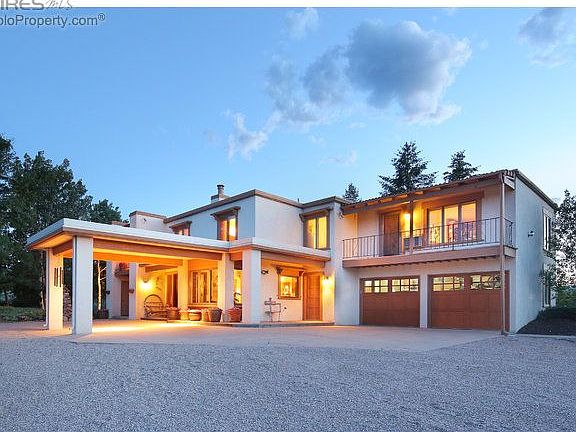 Overlooking 20 acres of deciduous trees & evergreens, natural springs & ponds, sits this intriguing Pueblo Revival home rich in character & design. Watch deer, elk, fox, owls & many songbirds play in their natural habitat; a paradise offering majestic views of the Rockies & Boedecker Lake. Maple soft-close cabinets, knotty maple floors, Bolivian granite & Mexican tile countertops, & solid wood 4 & 8 panel doors is just the beginning! Master Retreat with FP & steam shower. View the 3-D TOUR.