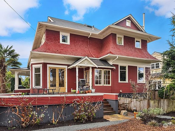 Iconic, lovingly cared for 1907 Green Lake farmhouse, completely remodeled in 2001, on a gorgeous over-10,000 square foot lot. Walking up the corner path to the wrap-around front porch leads you to a peaceful bygone era and modern updates. Soaring ceilings and gleaming hardwoods welcome you to the formal dining and living rooms with original stained glass windows and built-ins. Central kitchen hub with butcher block & granite counters, and mud room/pantry that leads to the wonderful yard with stone patio and room to garden and play. 2nd floor boasts 2 beds, bath + primary ensuite. 3rd floor office with roof deck access and hot tub. Lower level currently rents as a 1 bed/1 bath apt with separate entrance. In the heart of Tangletown!