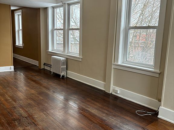 Large and airy 2 floor apt on a residential street in Squirrel Hill. Walk out your front door and around the corner to Starbucks, pizza shops and all the restaurant's in Squirrel Hill. The second floor includes a large kitchen with stove, refrig, dishwasher and microwave. Cabinetry was newly done 6 years ago. There is a full bathroom on the second floor with walk in shower. The living room is large with hardwood floors and a lot of light from the windows. There is an office/den on the second floor. The third floor has a large bedroom with full bathroom and a large closet. There is laundry in the full basement. This apt includes a covered front porch. The owner lived there for ten years and enjoyed living on Melvin St. The last tenant lived there for six years and moved out of town for a new job. The apt is very clean and move in ready.