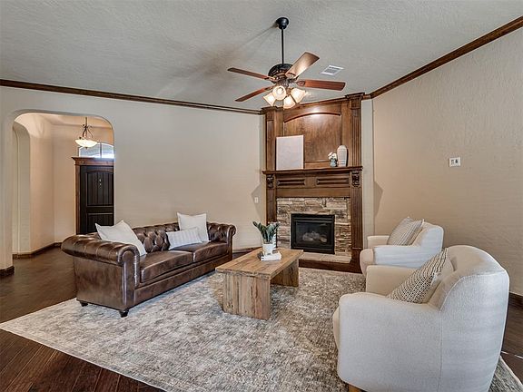 Nestled in a serene Oklahoma City neighborhood, this charming 3-bedroom, 2-bathroom home combines modern comfort with a tranquil setting. Built in 2012, the home features an open floor plan that effortlessly connects the living, dining, and kitchen areas, perfect for entertaining or family time. A cozy study offers the ideal space for work or hobbies. The spacious master suite boasts a private bath with dual vanities and a walk-in closet. Two additional bedrooms are thoughtfully designed with comfort in mind. Outside, you’ll find a perfectly situated east-facing patio with remote-controlled screens and a TV already mounted for enjoying Thunder games or Oklahoma college ball! The neighborhood enhances your lifestyle with picturesque walking trails and a peaceful pond, just perfect for evening strolls. With its desirable location, this home delivers a blend of suburban tranquility and city convenience, making it a perfect place to call home.