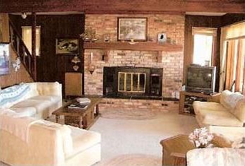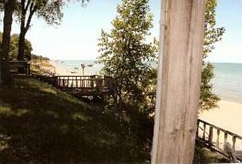 Chalet w/fireplace, views of bay, lakeside deck & lower walk-out level. Beautiful sugar sand beach with great swimming area.