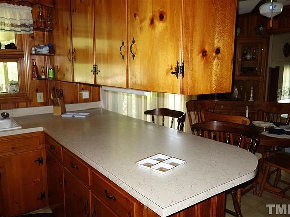 Well maintained home, updated master bath w/ceramic shower, living room w/gas log masonry fireplace, kitchen w/eating counter, open to dining area & knotty pine paneling, 3 hardwood under most carpet, 3 bedrooms w/spacious closets, laundry room, enjoy the screened porch & grilling deck overlooking the fenced back yard, detached 12 x 17 garage with side shed, 2013 Heat Pump, convenient to Henderson, Raleigh and US#1.